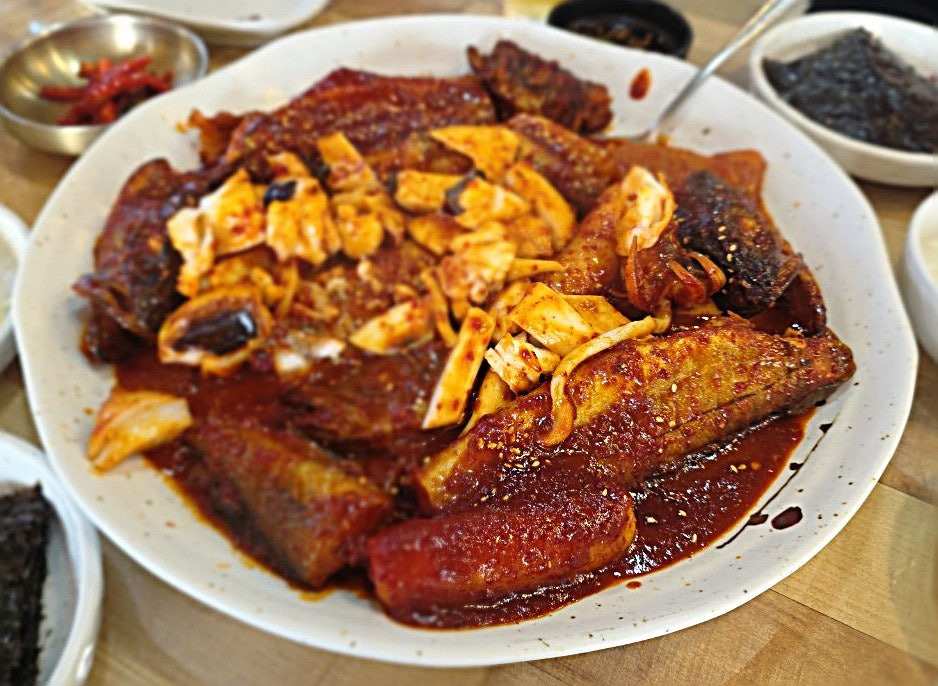 신선한 갑오징어를 매콤한 양념에 볶아낸